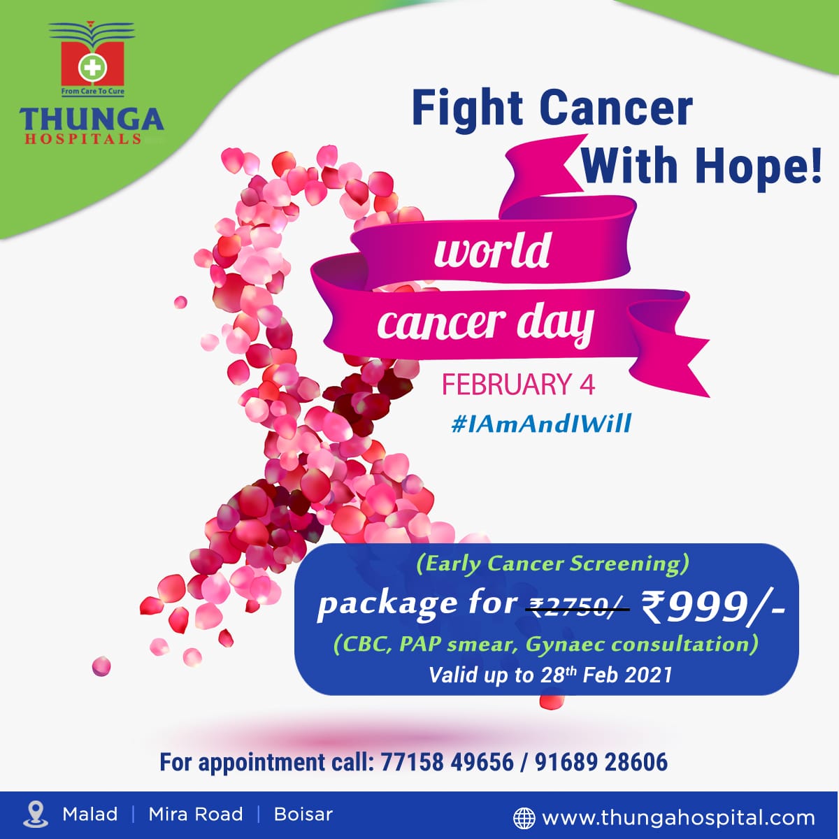 On this World Cancer Day, FIGHT CANCER WITH HOPE. Please avail our "EARLY CANCER SCREENING PACKAGE" worth Rs. 2750/- is now available at Rs. 999/-